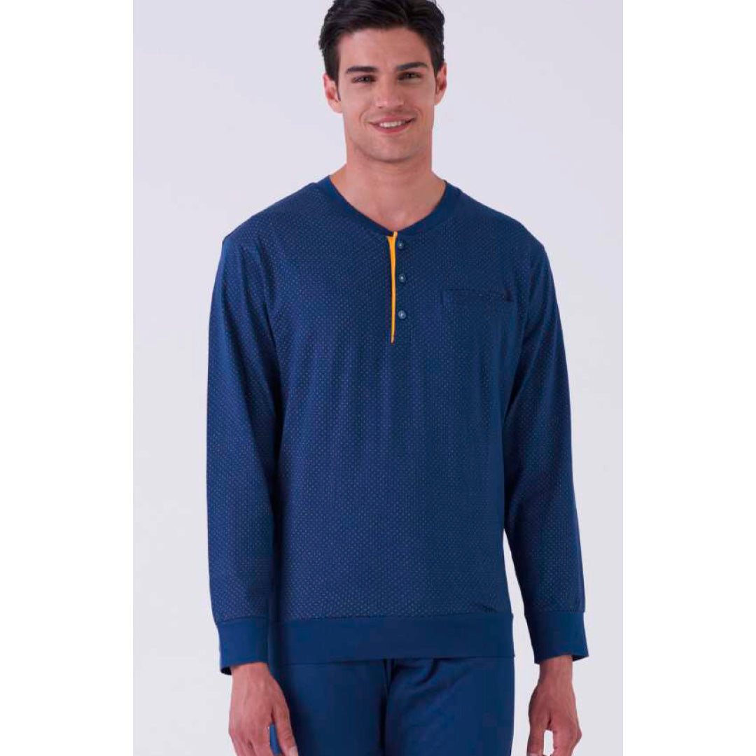 Pigiama uomo in 100% Cotone manica lunga pantalone lungo. Maglia e pantalone con polsini