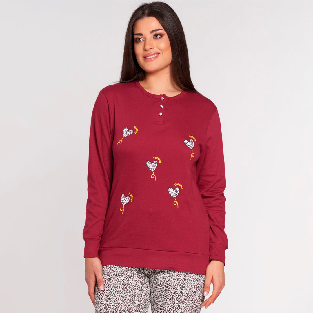 Pigiama donna manica lunga e pantalone lungo con bordi caldo cotone , vestibilita' regolare