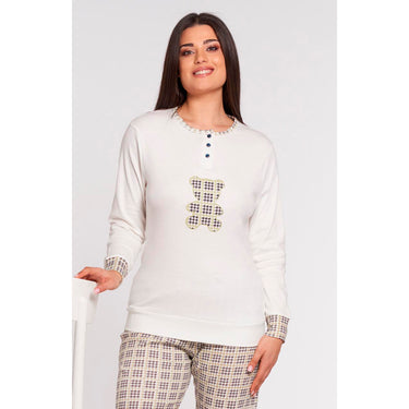 Pigiama donna manica lunga e pantalone lungo con bordi caldo cotone , vestibilita' regolare