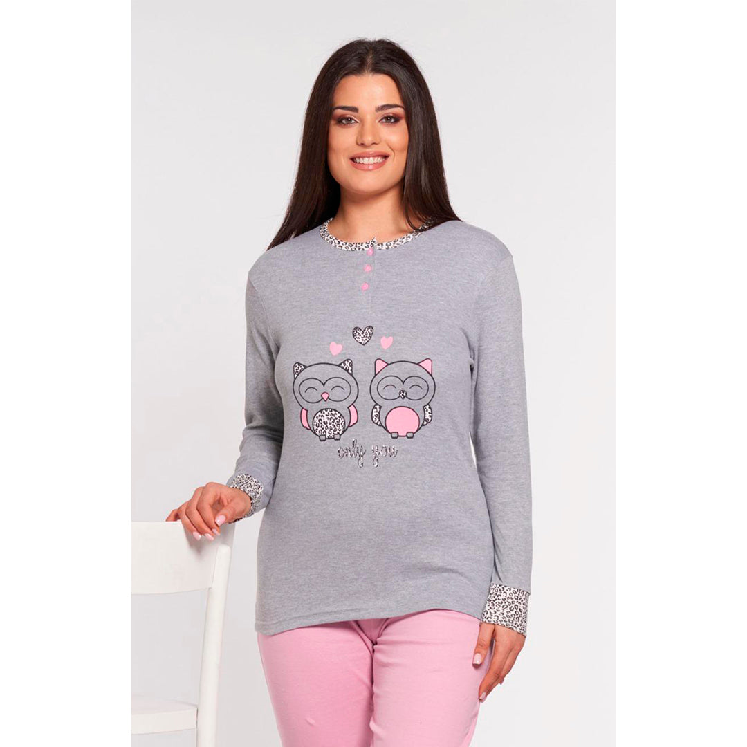 Pigiama donna manica lunga e pantalone lungo con bordi in 100% caldo cotone, vestibilita' regolare