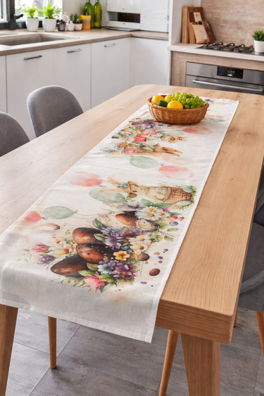 Runner in 50% cotone 50 % poliestere interamente realizzato in Italia . Ottima manifattura , resistente ai lavaggi , ideale come centrotavola o come guida su una consolle. Misura 45X140 cm
