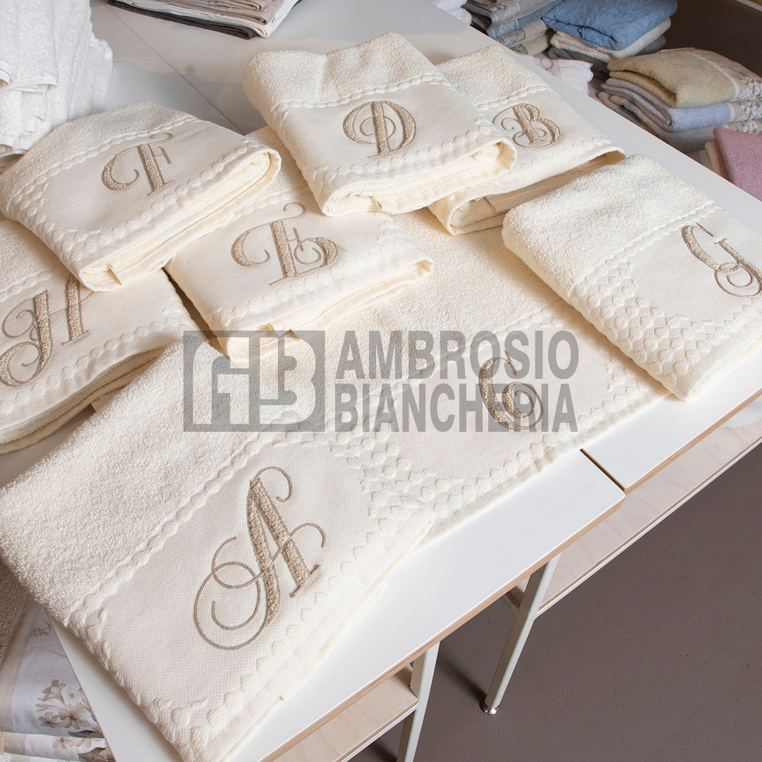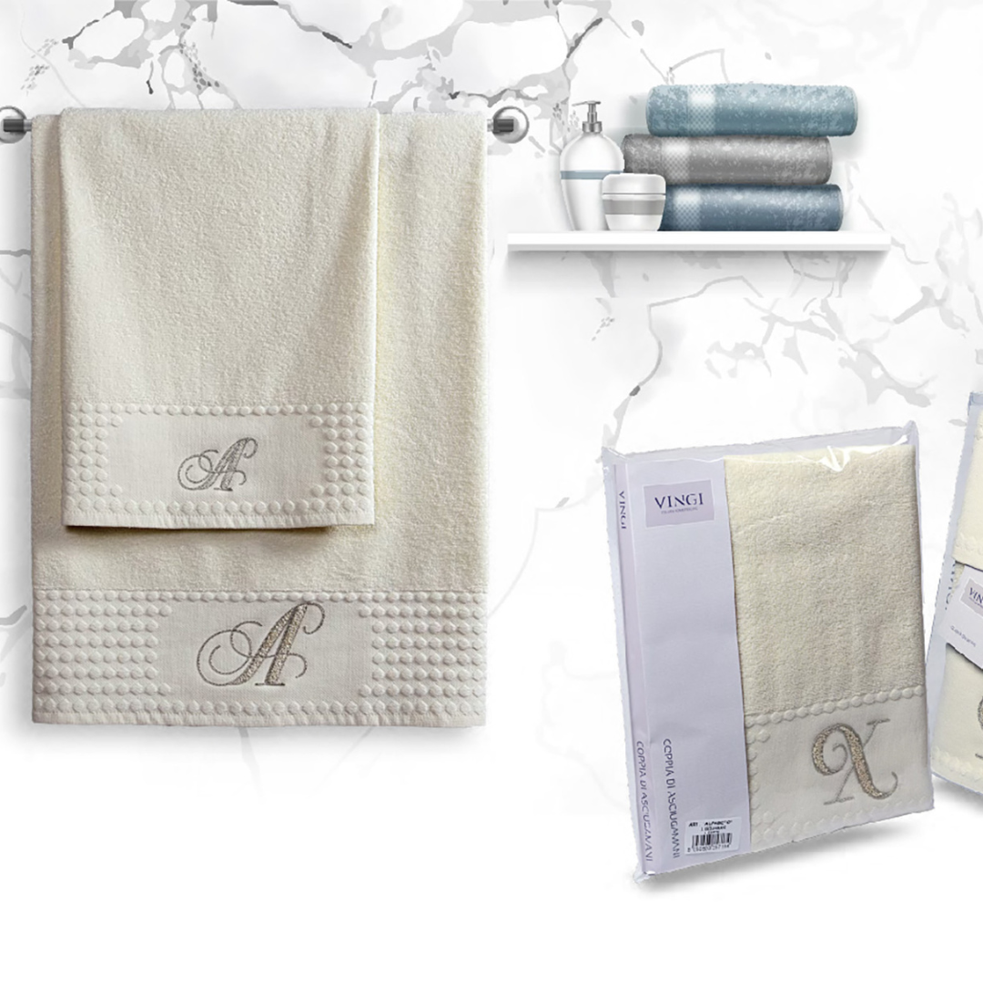 Set viso e ospite con iniziale ricamata 460 gr di spugna in 100% Cotone