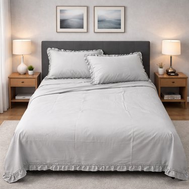 Lenzuolo sopra 250X290 cm, lenzuolo sotto con angoli 180x200cm+28cm , 2 federe 52x82 cm. 100% cotone made in Italy
