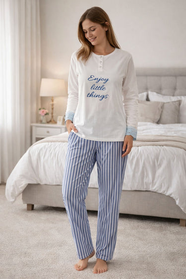 Pigiama donna manica lunga e pantalone lungo con bordi 100% cotone