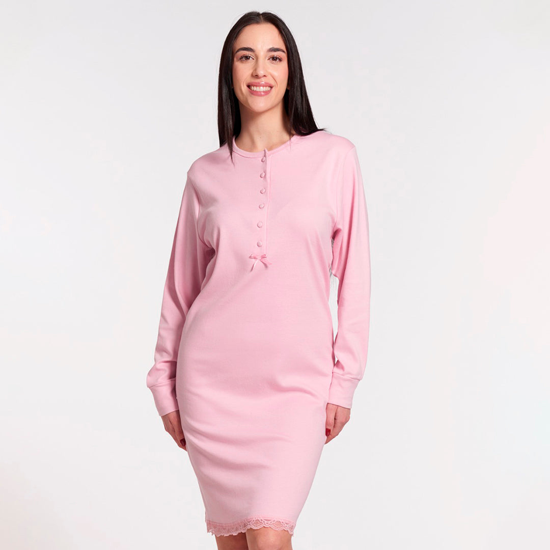 Camicia da notte da donna manica lunga in 100% caldo cotone, vestibilita' regolare