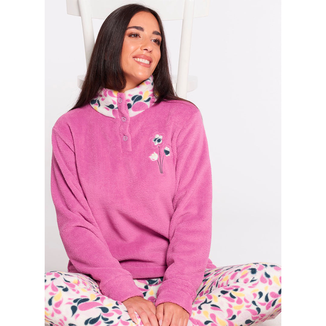 Pigiama donna manica lunga e pantalone lungo con bordi in morbido pile , vestibilita' regolare