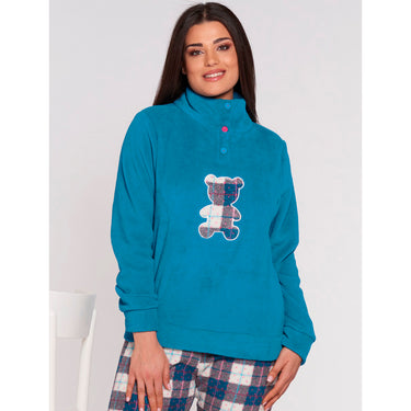 Pigiama donna manica lunga e pantalone lungo con bordi in morbido pile , vestibilita' regolare