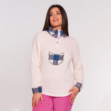 Pigiama donna manica lunga e pantalone lungo con bordi in morbido pile , vestibilita' regolare
