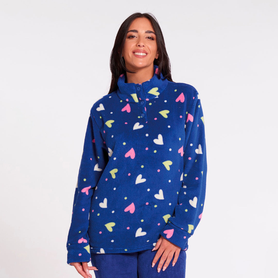 Pigiama donna manica lunga e pantalone lungo con bordi in morbido pile , vestibilita' regolare