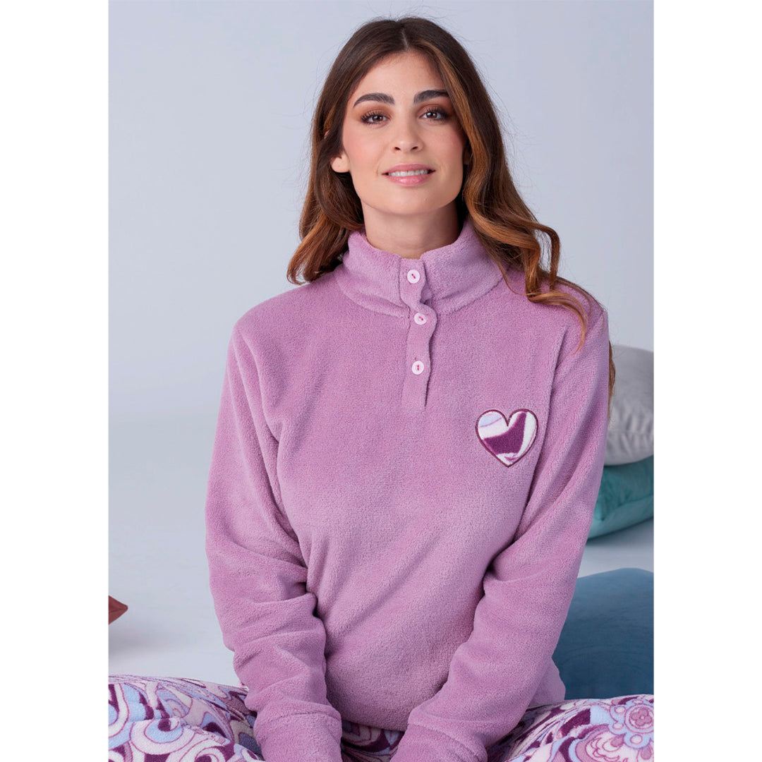 Pigiama donna manica lunga e pantalone lungo con bordi in morbido pile , vestibilita' regolare
