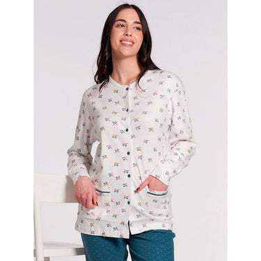Pigiama donna manica lunga e pantalone lungo con bordi in 100% caldo cotone, vestibilita' regolare