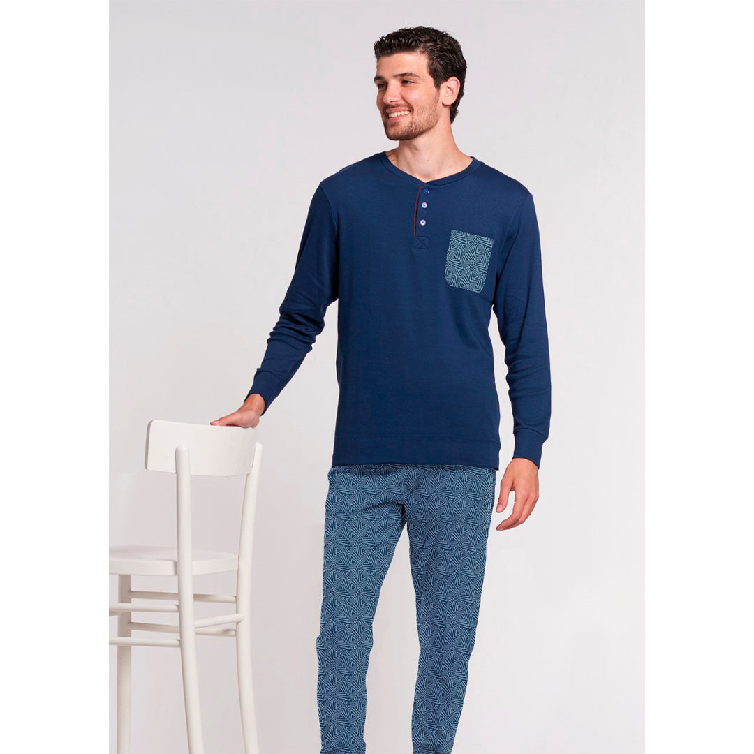 Pigiama uomo 100% caldo cotone manica lunga pantalone lungo. Maglia e pantalone con polsini