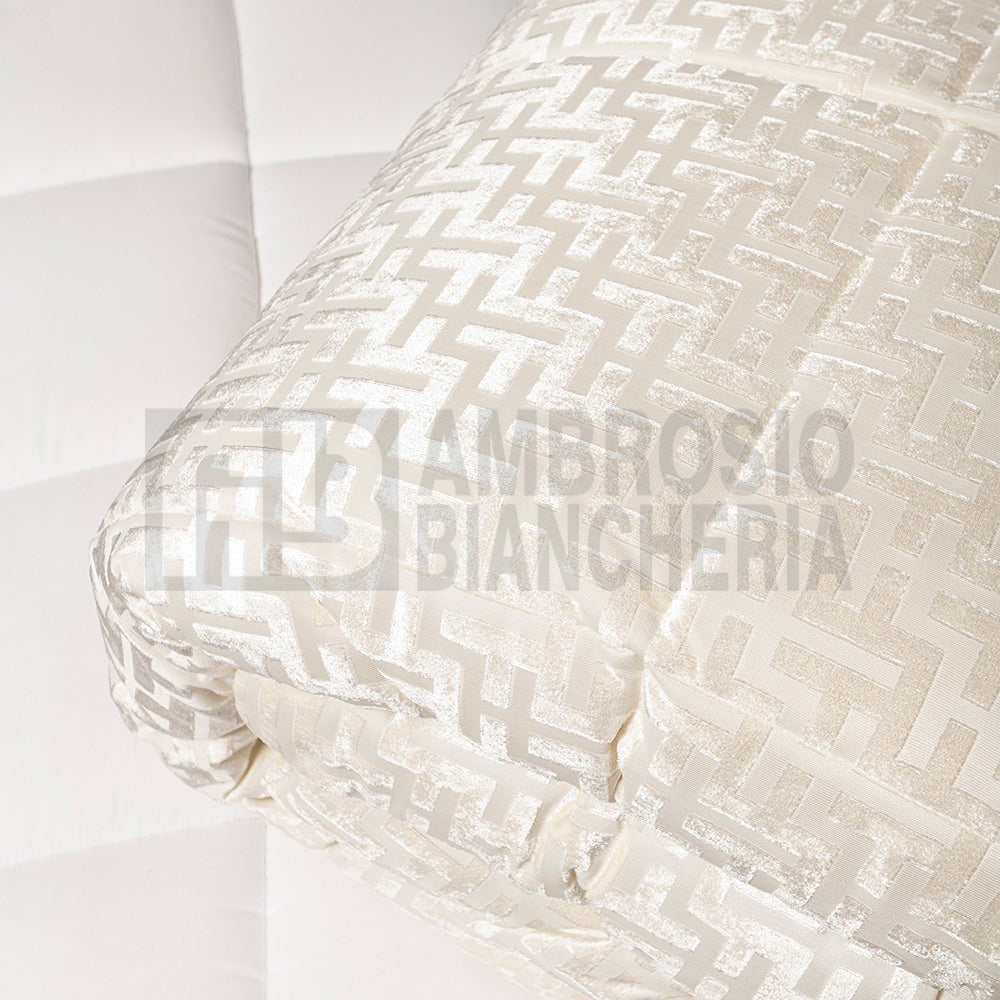 Un allover romantico, che abbraccia tutto lo spazio del letto, per accompagnarti nel mondo dei sogni con la sua eleganza sobria e raffinata.