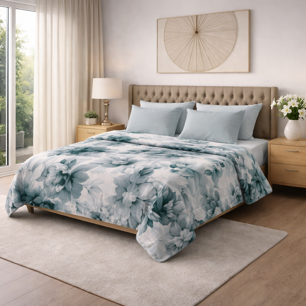 Il Copriletto Solange realizzato in stampa digitale piazzata è disponibile nella misura matrimoniale 240x280 cm