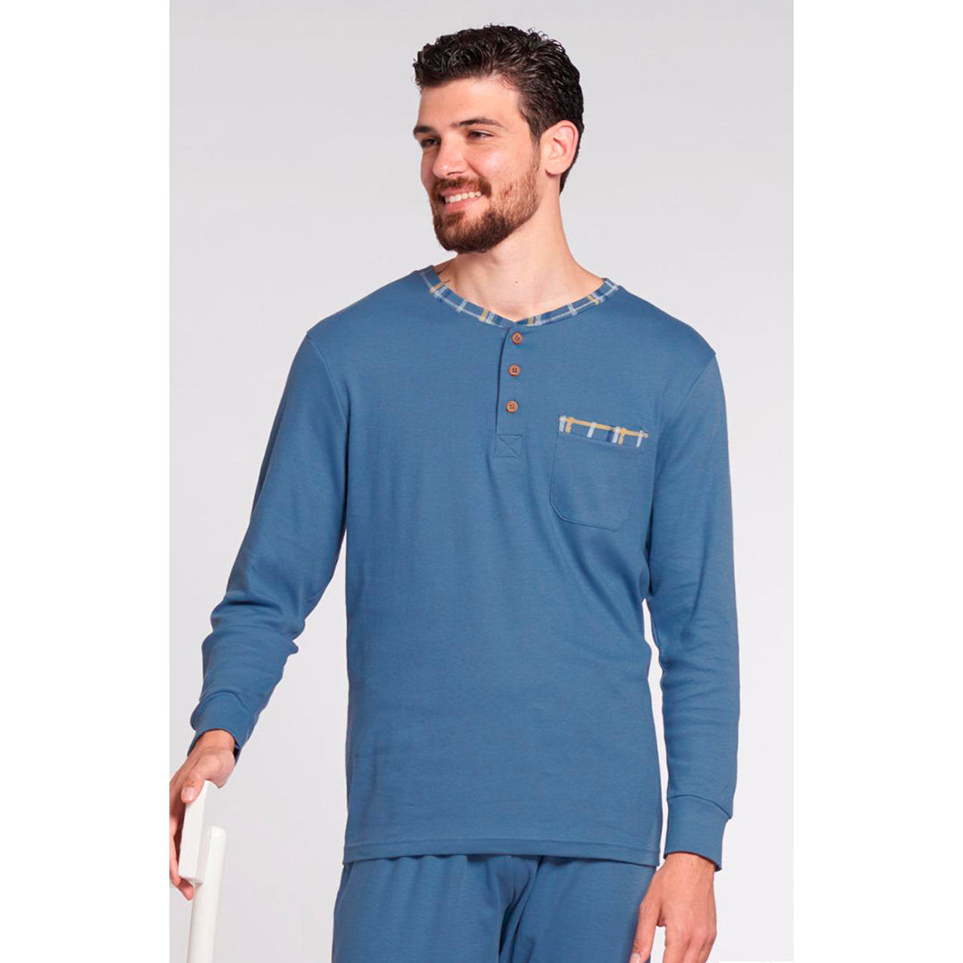 Pigiama uomo 100% caldo cotone manica lunga pantalone lungo. Maglia e pantalone con polsini
