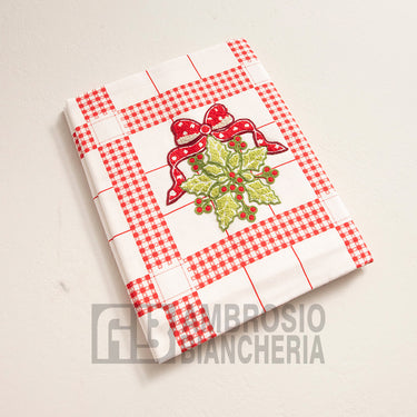 Tovaglia X12 in cotone con ricamo centrale 140X240 cm confezionata in scatola a tema natalizio