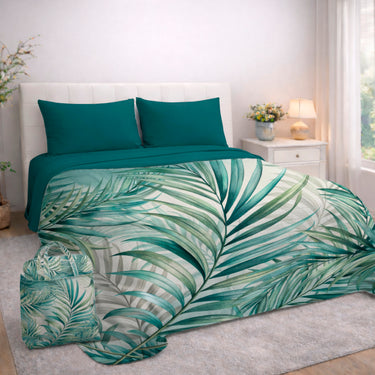 Trapuntino matrimoniale in morbida microfibra 260X260 cm confezionato in borsa di tessuto riutilizzabile della stessa fantasia del trapuntino. Imbottitura 180gr poliestere anallergico