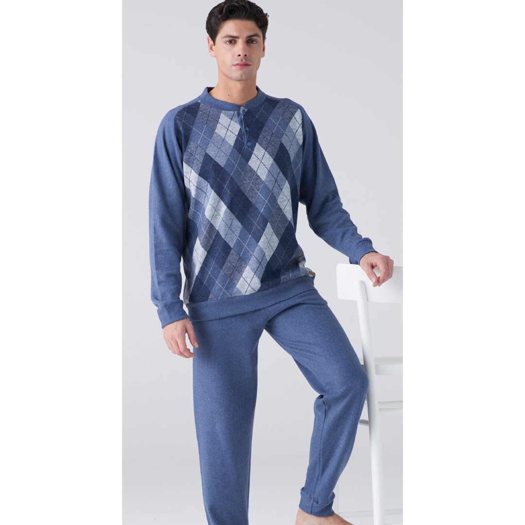 Pigiama uomo in punto milano 35% cotone 65% poly manica lunga pantalone lungo. Maglia e pantalone con polsini
