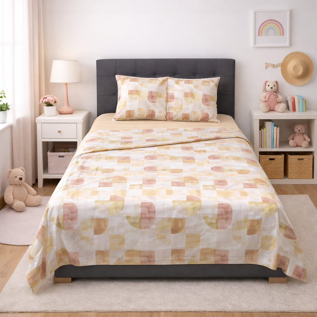 lenzuolo sopra 160x290cm , lenzuolo sotto con angoli 90x200 cm , 1 federa 50x80 cm