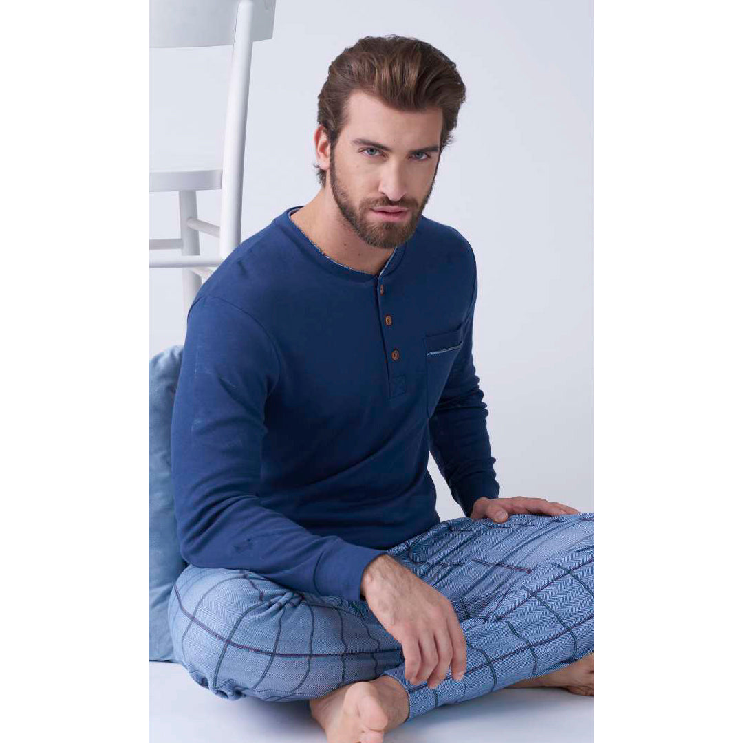 Pigiama uomo 100% caldo cotone manica lunga pantalone lungo. Maglia e pantalone con polsini